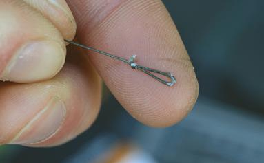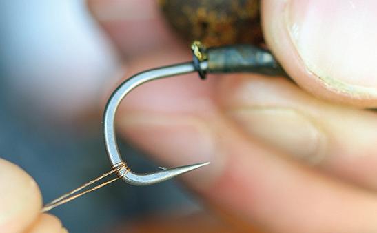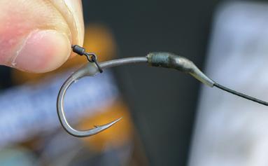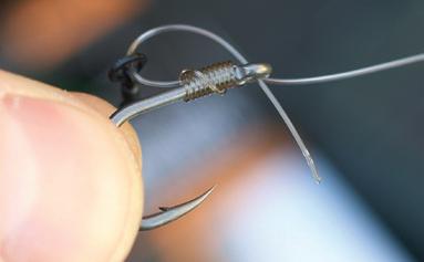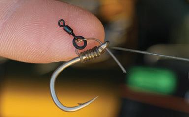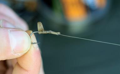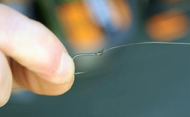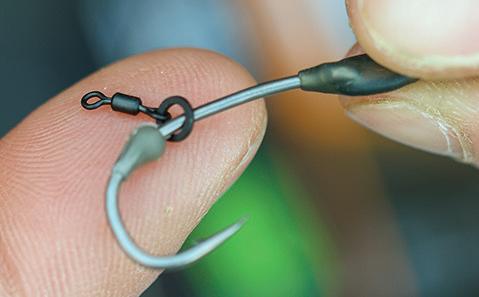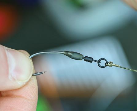 Tie a 3.7mm Large Rig Ring 5mm above the hookbait with a double overhand knot.