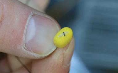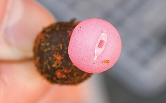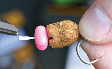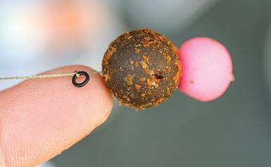 Attach a pop-up hookbait to the Mini Hook Ring Swivel using bait floss and the ‘blob’ method.