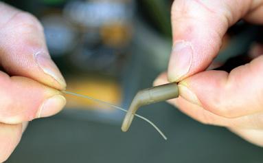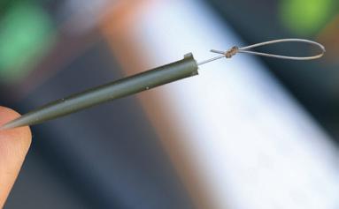 Thread an Anti Tangle Sleeve onto the hooklink and tie a loop in the end of the hooklink.