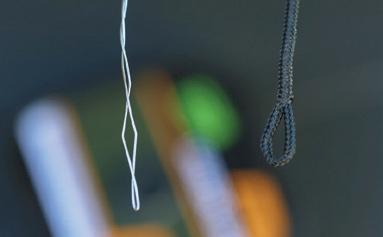 02. THE HOOKLINK/BOOM We are using a semistiff coated braid for demonstration purposes.
