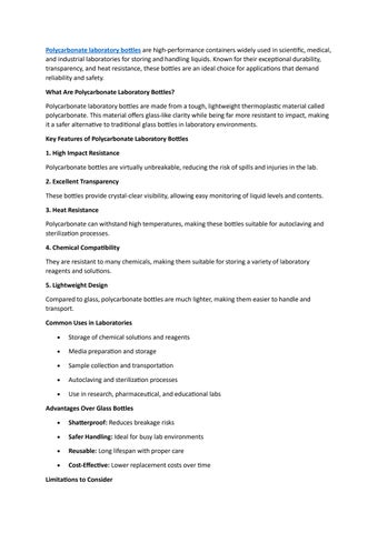 Key Features of Polycarbonate Laboratory Bottles