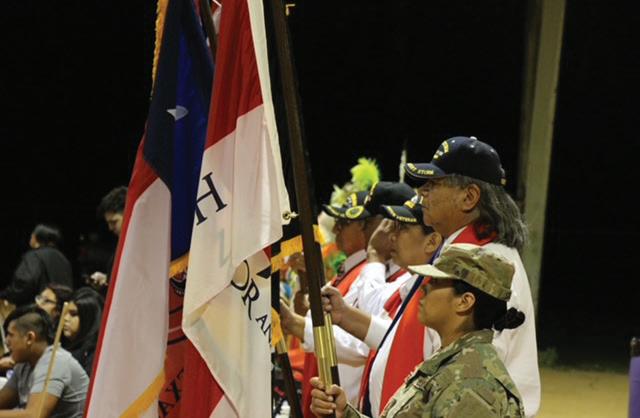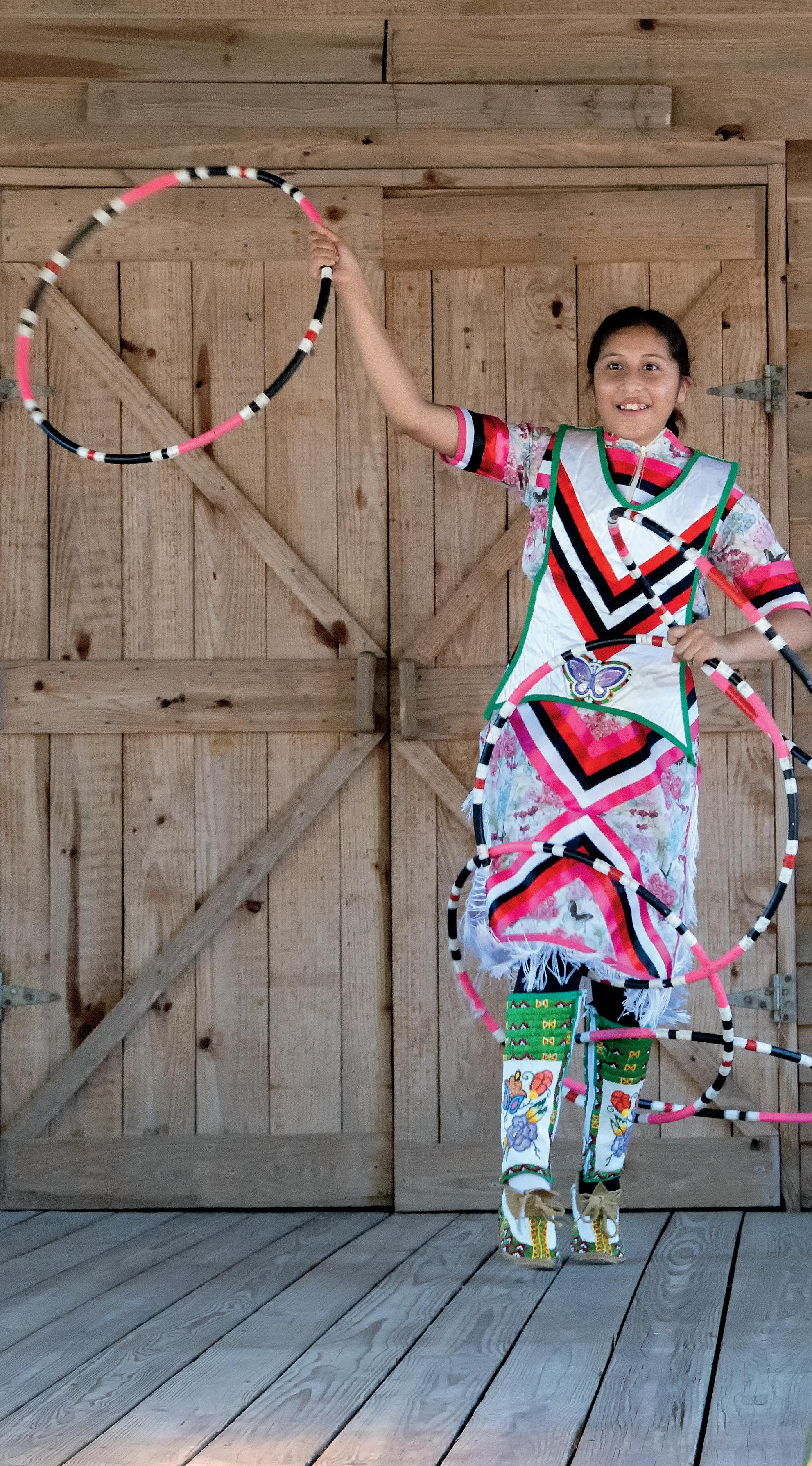 Mattie Littlecreek of the Alabama-Coushatta Tribe of Texas/ Ojibwa/Kiowa demonstrates a traditional tribal dance at the annual Harvest Festival.