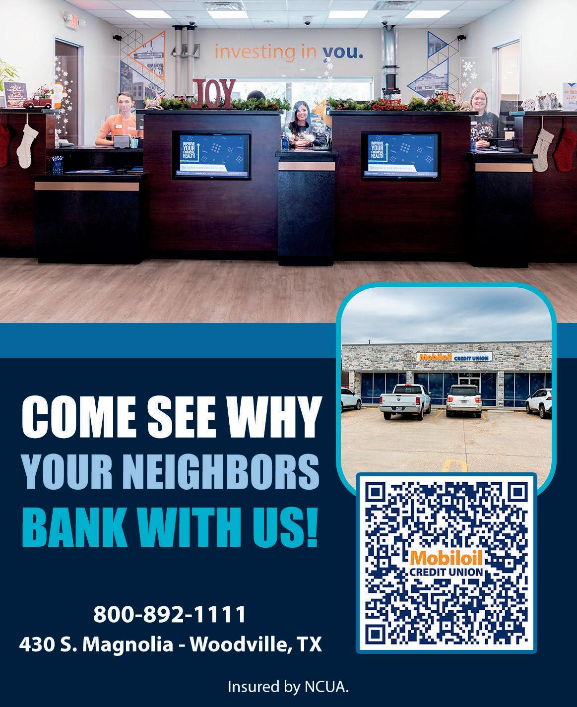 10 TikTok/Tick-Tock By Kelli Barnes 21 Hoping Through Hurt Local author finds solace in creativity By Chris Edwards 36 New Chapters Unfolding, history being made for Alabama-Coushatta Tribe of Texas By Emily Banks Wooten 14 50 Ways to Enjoy Tyler County 22 Discover Shopping in Tyler County 26 Tyler County’s Shining Star 27 A Glimpse at Traditions 32 Moments & Memories 35 Kirkley Springs A brief history of Woodville’s roadside park 39 Our Favorite Drinks 40 Local Service Guide 42 Worship in Tyler County
