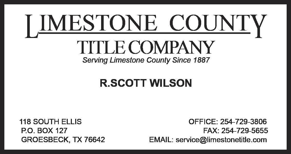 310 S Dallas St. Groesbeck, Texas 76642 254-729-2933; Fax: 254-729-3151, scott.smith@co.limestone.tx.us