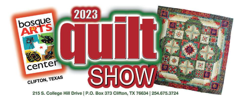 9 AM TO 4 PM Entry Form Deadline - Friday May 12 Entry Fee - $10.00 per quilt • Limit 5 quilts Entry fee for Display only - $5.00 non-refundable fee Quilts need to be delivered to the Bosque Arts Center May 22 - May 26, 10 a.m. - 4 p.m. OVER $2,000 IN CASH PRIZES FOR WINNERS!
