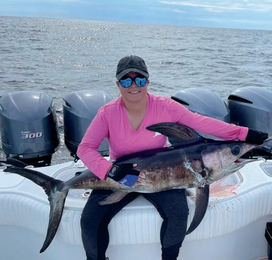 yellow or orange. Using these colors gives you two important advantages; you can monitor your lines position and others near you can do the same. This helps avoid tangles, cutoffs and lost fish. With a 15 to 20’ mono leader, the colored Braid isn’t going to be seen by the fish, even in clear water. If you have a concern in this area, use the blue Braid as it becomes almost invisible in blue water. Using a 15 foot 80# mono leader gives you a mono length that allows many chances to re-tie at its outer end due to cutoffs, lure or hook changes, etc. The mono is also much safer to handle while bringing a fish aboard than the thin Braid.