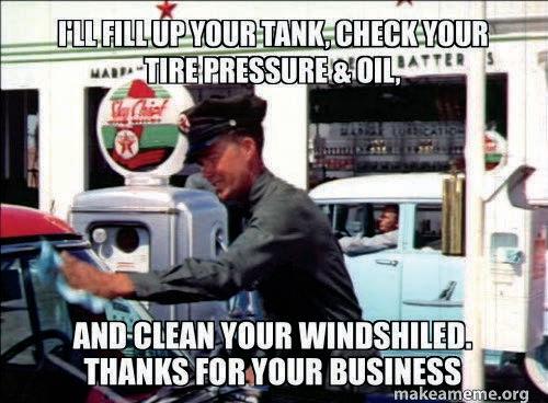 Some of you are too young to remember but there was a time when we would pull our vehicle into a gas station to get gasoline and the following would happen: