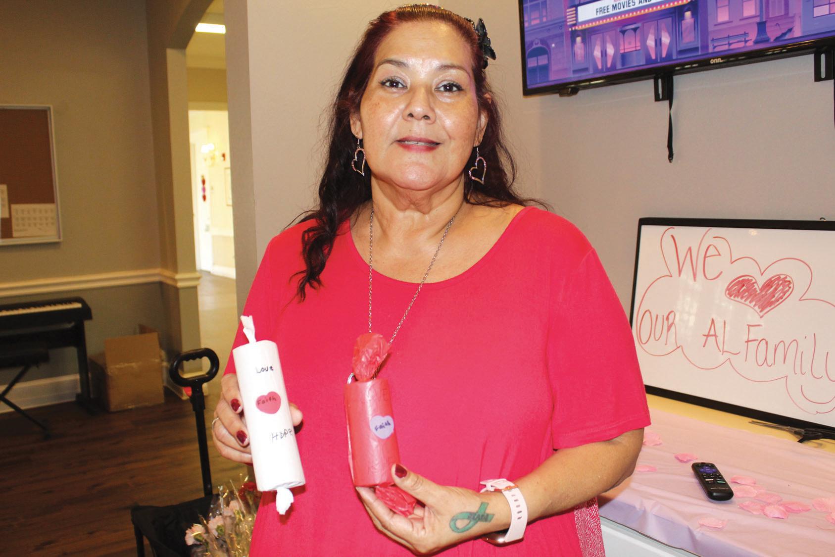 In addition to adopting grandparents and providing snacks to residents, Contreras likes to assist nursing homes throughout the county with events they put on for their residents. Recently, she went to nursing homes in Colorado County and Sealy delivering chocolates and floral arrangements that she and her volunteers handcrafted for Valentine’s Day. Flower Carter and Patsy Mrkwa, who Contreras is a caregiver for, assisted with putting the arrangements together.