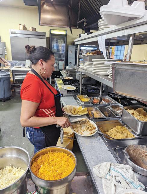 Santiago “Jimmy” Degollado Jr. prepares to serve a plate of delicious Mexican cuisine to a customer at his restaurant, La Antigua Mexican restaurant. Photo by CJ Vetter