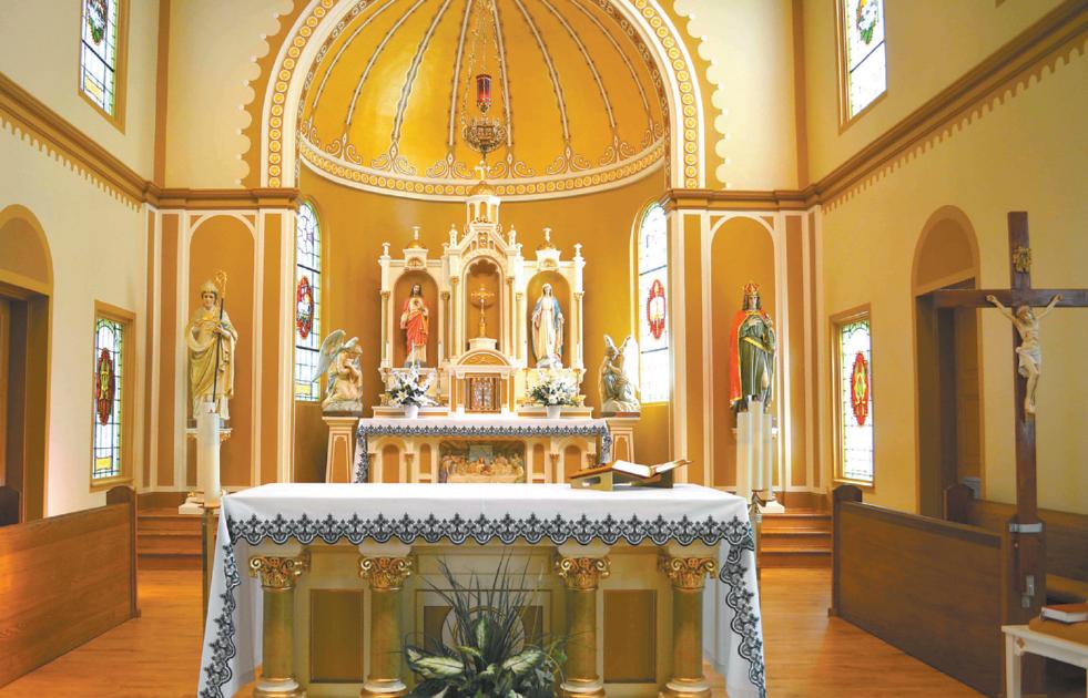 In 1922, the original church was torn down and a larger edifice of white brick was erected. The cornerstone of this majestic church was laid on July 4, 1922, followed by the dedication on October 25, 1922. The blessing of the beautiful stained glass windows took place on December 2, 1923.