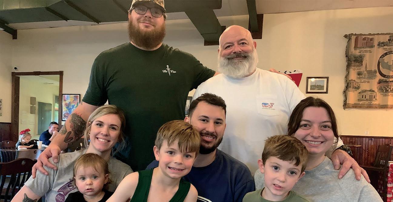 11. Clarence Bradley, right back, has lived in Chalmette since 1988. “It’s safe and still family oriented, not hustle and bustle, and it’s closer to everything you want to do.” He’s joined at Par 3 Restaurant with, from left front, daughter-in-law Marrisa Bradley, granddaughter Elvie, grandson Nixan, son-in-law Jimmy Hallock, grandson Clayton Kruse, daughter Rebeckah Hallock, and son Nicholas standing next to him.