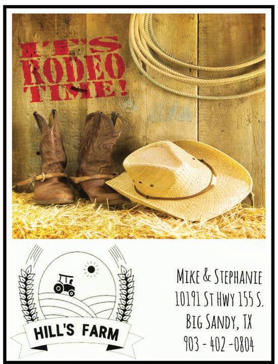 65 Gladewater Round-Up Rodeo HEWITT FARM SUPPLY Since 1973 903-636-9001 101464 State Hwy 155 Big Sandy TX 75755 hewittfarmsupply@aol.com Longview Mall 308 Lubbock St. Newcastle, TX 76372 businessinquiries.dalebrisby@gmail.com