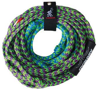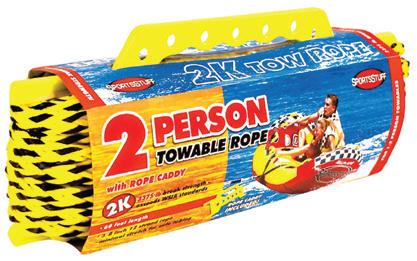 ROPES • 2-Rider, deflated size: 69” x 66”. • Full cover. • Unique backrest/front riser construction. • Air cushioned stabilizer walls. • 4-Rider, deflated size: 74”. • Partial cover. • Tube Style: Open top. • Non-slip cushioned handles. • 2-Person tube tow rope. • Diameter 3/8”. • 4-Person tube tow rope. • Diameter 9/16”. • 6-Person tube tow rope. • Diameter 3/4”. • 3-Rider, deflated size: 79” x 78”. • Full cover.