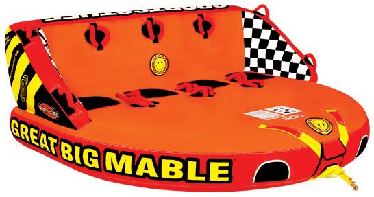 Unique backrest/front riser construction. • Air cushioned stabilizer walls. • Includes: 601540 (53-4310) Tube, 12 volt air pump and 50’ tow rope. Super Mable TOWABLE Stars & Stripes TOWABLE Great Big Mable TOWABLE Stars & Stripes TOWABLE Kit 601650 53-2213 601371 AHBT-1329 7-52428 601662 53-2223 601540 53-4310 7-52468 601674 53-2218 601546 53-4310K 7-52438 $24668 $14615 $775 $31171 $8645 $950 $36348 $11283 $1300 Big Mable TOWABLE Big Bertha TOWABLE TUBE TOW ROPE TUBE TOW ROPE TUBE TOW ROPE