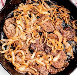 Tender seasoned beef calf liver topped w/ sweet grilled onions.