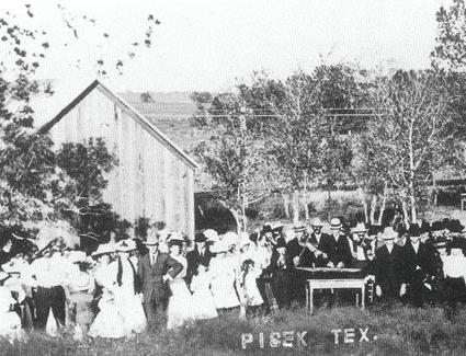 Krenek, blacksmith shop run by Dick Hilgen, and a post office. Krenek also had a cotton seed house and Lorenz Kulhanek ran a saloon. Families credited with settling the small town of Pisek include the Kickler, Schmidt, Canik, Kulhanek, Lutonsky, Dvorak and Stein families. The legend of Pisek also includes a celebration given by Krenek to celebrate his purchase of 19 train cars full of cotton. The party was at the railroad tracks around 1910. The Krenek band from Wallis played for Mike and