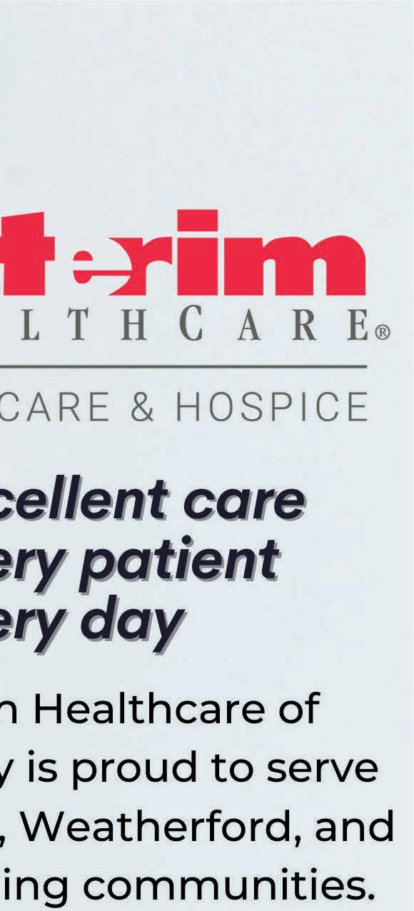 FAIRWAY Magazine | July 2023 C Locally Owned DCBE Resident JOHN ALLEN, PRESIDENT john@jpallenco.com RUSSELL ALLEN, VICE PRESIDENT russell@jpallenco.com REFERENCES: The Estate On Lake Granbury The Cottages Independent Senior Living Biltmore Hotel & Resort 4123 Cimmaron Trail 310 Comanche Vista 5131 Fairway Drive Additional Residential References On Request Need a LOCAL CONTRACTOR? www.jpallenco.com 817-894-0667 817-894-7266 4119 Cimmaron Trail Granbury, Texas 76049 GENERAL CONTRACTOR COMMERCIAL ROOFING RESIDENTIAL ROOFING REMODELING SCREEN ENCLOSURES SIDING - WINDOWS INSURANCE CLAIMS