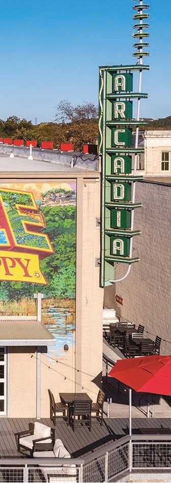 The 1948 Arcadia neon sign was renovated and relocated to the new side alley, reaching the landmark’s back deck, which is newly furnished by the generosity of the Hill Country Charity Ball Association. The sign is a beacon to be seen by all, calling visitors and locals. Along with it, a “Kerrville, Live Happy” mural, donated by Happy State Bank, adorns the back deck — an art installation that has garnered much admiration and appreciation from our community, visitors and even notable publications.