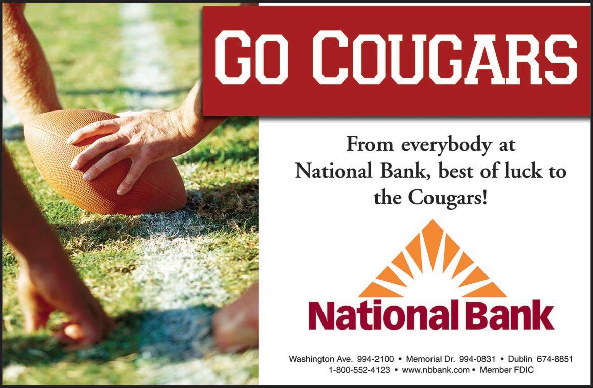 Locally ned erated “Our Family serving Your Family” since 1970 . o er uneral ome.com ana Bo er Rygas Manager ob White l d. ulas i aron C. Rygas Manager . ain treet ublin Good Luck COUGARS! – The Rygas Family Bo er uneral C a els