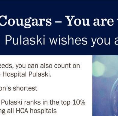 5 6 1 516 East Main St., Suite 1 • Pulaski, VA Kelly Howlett & Jamie Bentley BARBERS Serving Pulaski since 1926 Sani-Mode Barber Shop is a full service barber shop located in Pulaski, Virginia. Sani-Mode has been open and running in Pulaski since 1926. We feature t o a ard- inning licensed master barbers ith over 60 years combined e perience. We pride ourselves on great customer service. No gimmicks Come visit us today and be a part of the Sani-Mode family! Have a Great Season! GO COUGARS! 303 Fifth Street NE | Pulaski 540-980-1180 Mon - Fri am - m Sat am - m Sun m - m • Fresh Fruits & Vegetables • Seasonal Plants • Blake’s Macarons • Artisan Breads & Preserves • Homemade Pies & Desserts • Local Farm-Raised Meat LET’S GO COUGARS! Children’s Choice 5562 Cougar Trail Road • Dublin 540-674-9359 Dr. Gary Samples, M.D. • Jackie Morgan P.A.C. We Support All COUGAR Athletes!