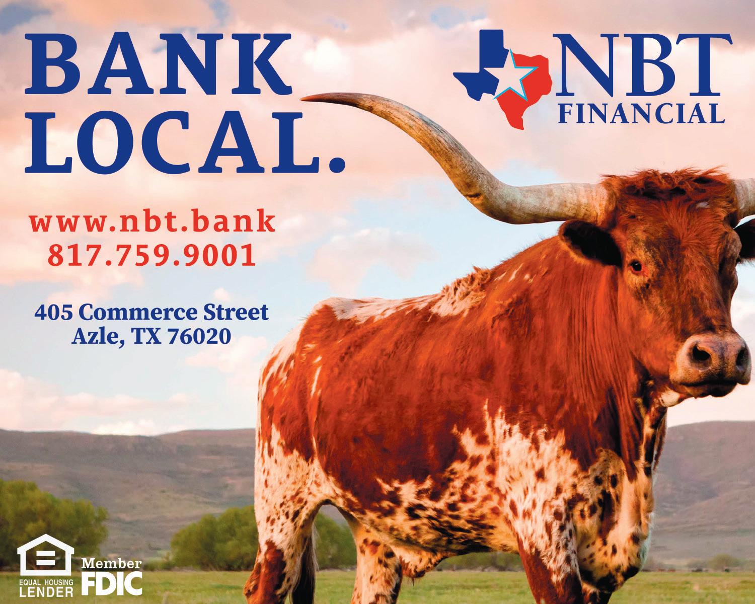 600 E. Hwy 199 Springtown H 817-523-8801 OnlinewithTCB.com Friendly Hometown Banking! Mon-Thurs 9 am - 4 pm, Friday 9 am - 6 pm Drive-Up Hours: Mon - Fri 8 am - 6 pm, Sat 8 am - 12 pm Proud to be Local!