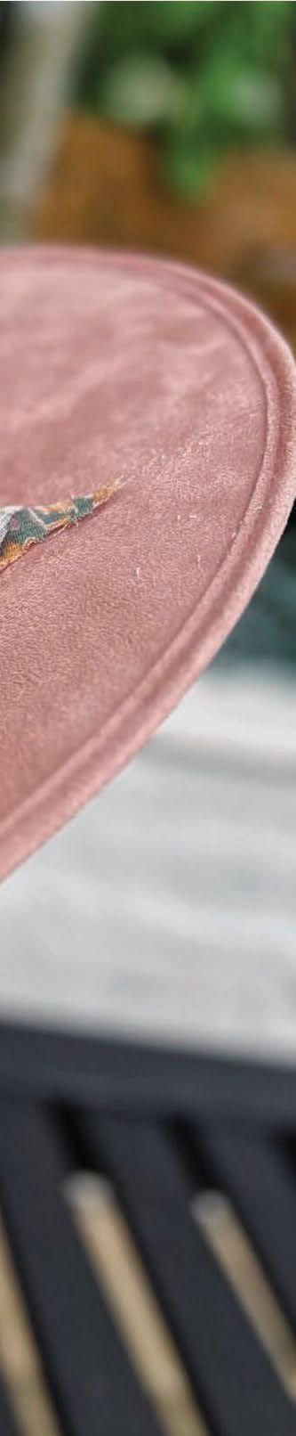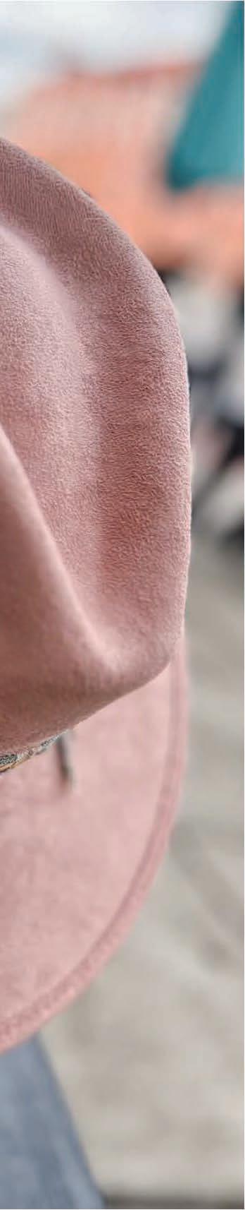 stuff. Then as far as like the style, I just show people what I do, like ‘this would be cute this way’ or ‘this would be cute that way.’ We first look at what they brought me and take it from there. If they brought me a scarf, then I say okay let’s try and get with the colors of the scarf to make scarf pop on the hat. I just really like to talk it over with the client and say ‘alright, this is what I’m imagining, is this the same as what you are imagining?’ and we adjust from there. Thankfully, my first try is usually the best, but every now and then I may need to take this off, or change that, or add that, and then sometimes they’re like ‘hey, I was looking in my closet and I found this can we add this to it?’