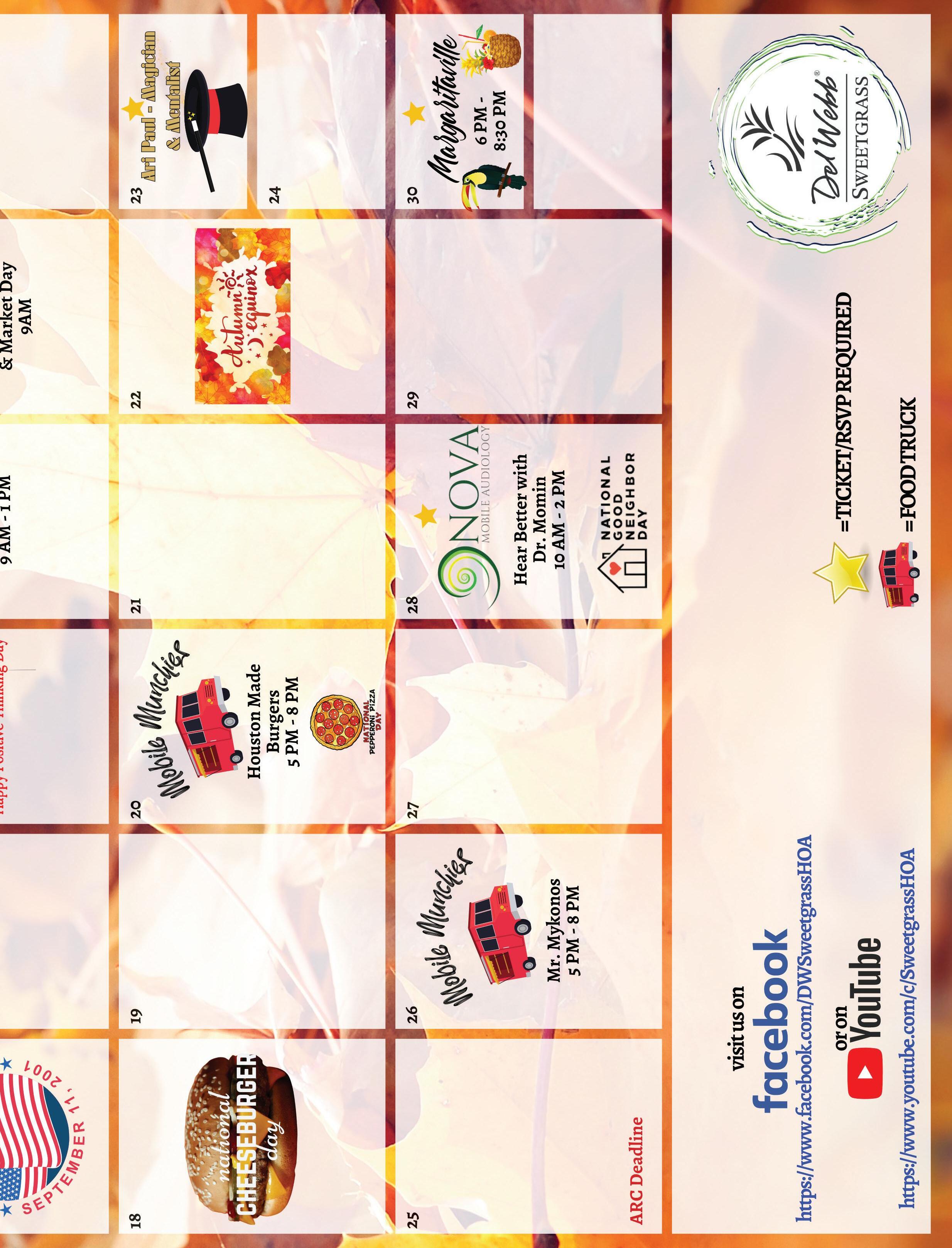 On Monday, September 11, 2023, the Sweetgrass Veterans Club will lead the Sweetgrass community in remembering and paying tribute to the nearly 3,000 men and women who lost their lives to the terror attacks on September 11, 2001. The 9/11 Remembrance will begin at 8:30 am in front of the Lakehouse under the portico. It will include the Sweetgrass Singers providing the music program; a 9/11 Remembrance presentation; and an Honor Guard provided by the Lamar Consolidated High School AFJROTC. Representatives of the Richmond Fire Department and Fort Bend County Sheriff’s Department will be in attendance. Please join us for this 9/11 remembrance event. Years15Exp. PRESSURE WASHING PRESSURE WASHING Call: 281-669-7685 or E-mail: mr.pspressurewashing@gmail.com Driveways References Available Homes Patios & Decks D&JPAINTING Daniel Adames owner adamesdaniel1948@yahoo.com 281-450-7534 • 713-705-3905 40+ Years Experience