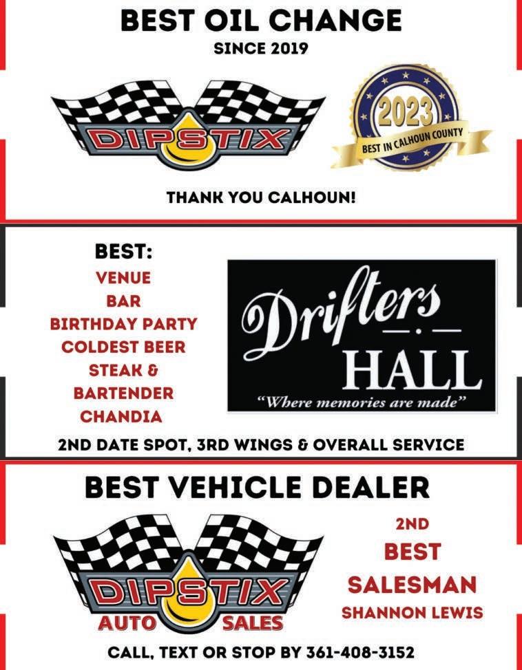 In the Best in Calhoun County voting, Port Lavaca Collision was runner up in Best Paint & Body Shop and Frankie’s was an honorable mention. Frankie’s was also an honorable mention in Best Service and Repair.