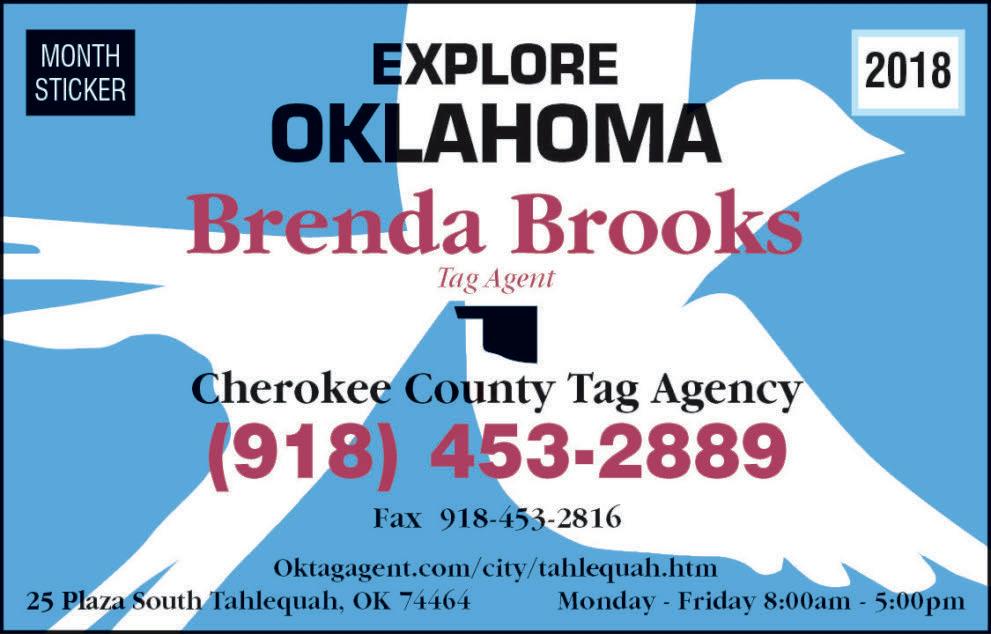 Cherokee County Tag Agent: 918-453-2889