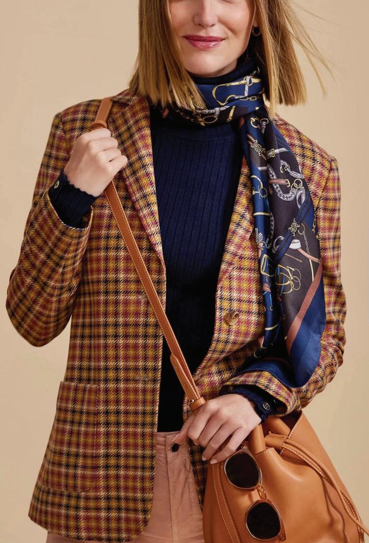 While pumpkin, a beloved fruit, is super popular this time of year, I’m even more excited about the arriv al of fall fashion. Many of the trends are back for the second time in my lifespan and I’m here for it. For starters, everything Western is super chic right now. From freshly-styled cowboy boots to fringe, fringe and more fringe, giddy-up cowpokes! Dig decades deep in your closet for this classic return. You’ll also be count ing sheep because head-totoe shearling is also trending. From bomber jackets, vests, purses and shoes, stay warm in this textile under the Fri day night lights. Double your dollar and check out the cute shearling clogs from Target as the quintessential clog is back!