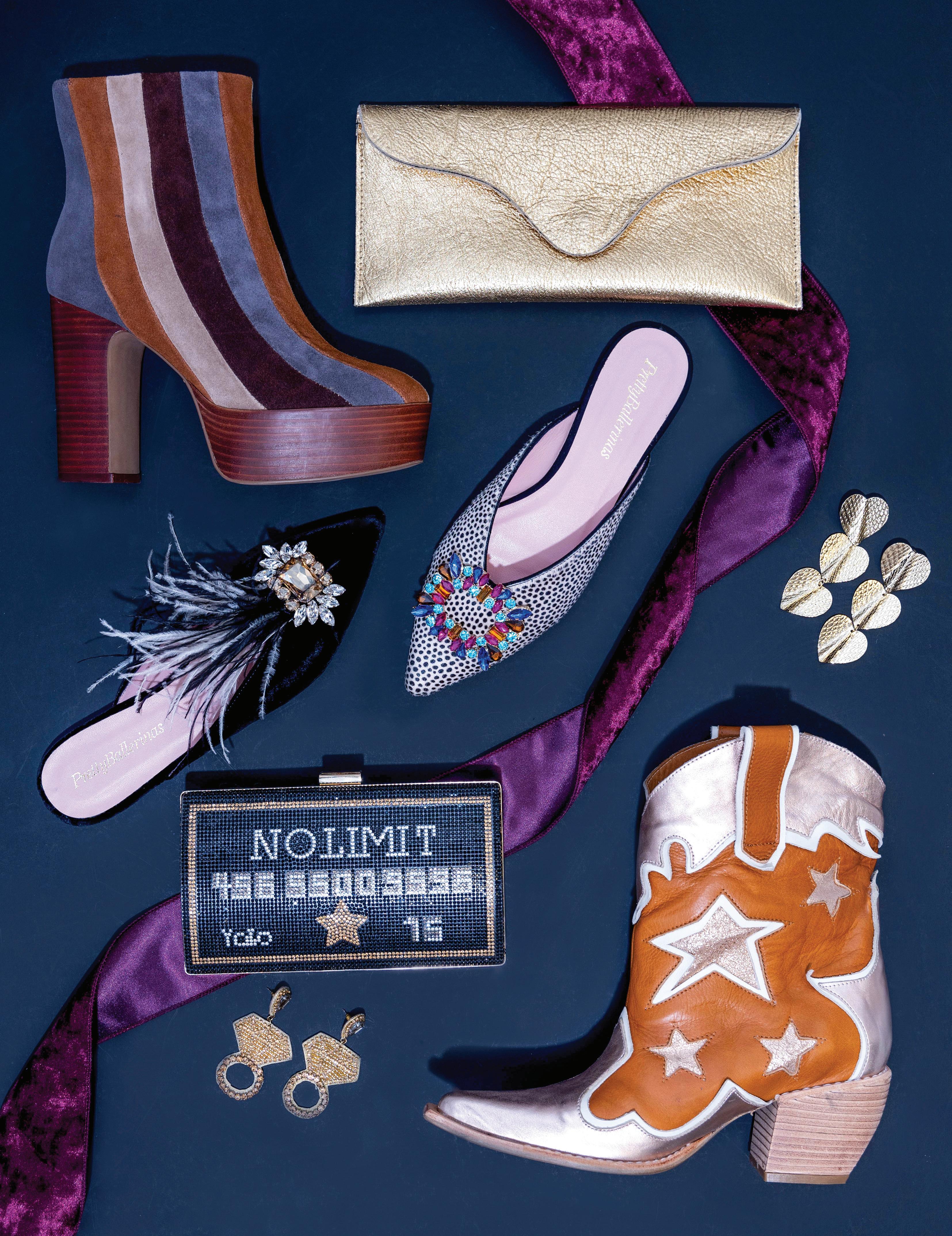 Charlotte: Dress, $198; CK Collection;251.990.9001. Sequin Kimono, $99; Dillard’s, 251.471.1551. Jena: Dress, Call For Price; Hemline, 251.287.6875. Heels, $140; The Gallery Shoe Boutique, 251.344.4257. Earrings, $178; The Holiday, 251.432.4911. Lesley: Dress, $148; The Mix, 251.298.9137. Heels, $160; The Gallery Shoe Boutique, 251.344.4257. Earrings, $45; The Holiday, 251.432.4911.