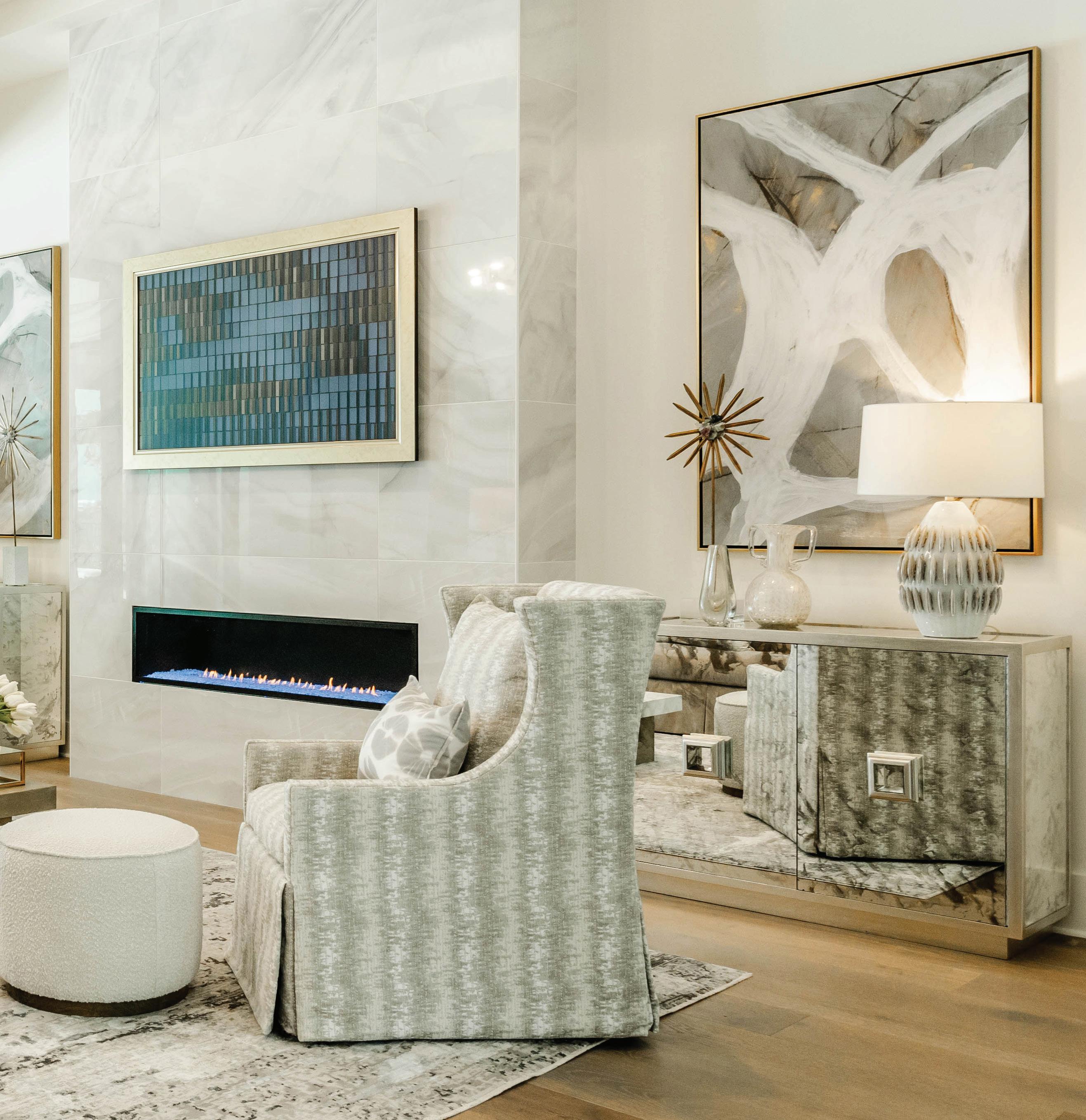 The retail showroom hosts furniture, art, accessories, lighting, rugs and more. The second level serves as the full-service design studio recently expanded to showcase fabrics, wallpapers, tile, marble, and wood samples. “We offer design presentations, showcase renderings and elevations, and floor plans on large screens for clients. We also prepare schedules for paint, tile, plumbing, electrical, and all exterior and interior elements for the builder and homeowners,” Cindy tells us..