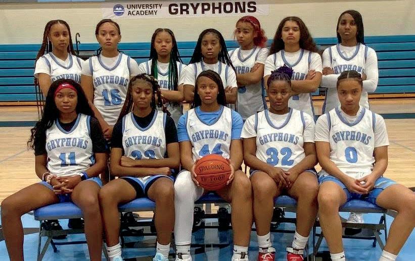 TWELVE COURTS OF CHRISTMAS 149 U N I V E R S I T Y A C A D E M Y UNIVERSITY ACADEMY 6801 Holmes Street Kansas City, MO 64131 www.universityacademy.org Superintendent: Rebecca Gudde Principal: Clement Ukaoma Activity Director: John Gresham oys ead Coach Randall Campbell irls ead Coach Stuart Wright GRYPHONS L D GRYPHONS 10 10 10 12 9 12 10 9 11 12 10 GRADE Anonda Ford Ashlee Ford Serayah Wright Hannah James Oriyanna Taylor Destiny Ward Lailah Austin Carisa Germain Makiyah Holmes Amaiah Holland-Wells Naveah Leeks NAME 0 2 4 5 10 11 15 21 23 32 44 NO. ROSTER 11 10 10 11 9 10 11 9 12 9 12 9 GRADE Jayden Veal Mario Canady Zha’Sean Taylor Le’Taveion East Tyree Flowers Michael Smith Caleb Brown Xavier Hoskins Daniel Smith Stephen Thomas William Udo Keaton Davis NAME 1 2 3 4 5 11 15 21 24 30 31 33 NO. ROSTER Missouri