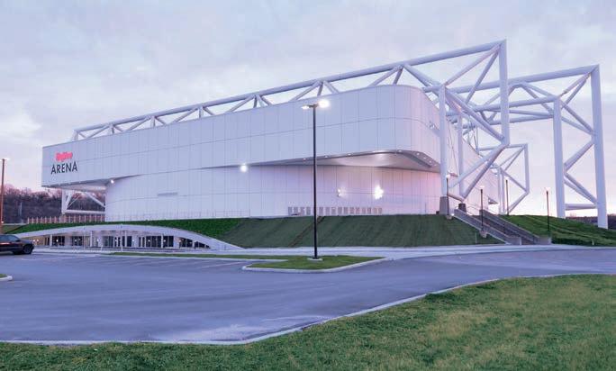 As an athlete in architecture school, Steve Foutch admired Kemper Arena for what it represented, and its architect, Helmut Jahn. Now, as a developer Steve enlisted Caleb Buland and Ken Mason, a team with more than two decades of experi ence in sports architecture, they set out to save the arena and spur revitalization by bringing new life to the historic Stock yards district in the West Bottoms by transforming a single purpose arena into a multi-level, multi-functional, sports complex. e original seating bowl was dissected creating two event oors.