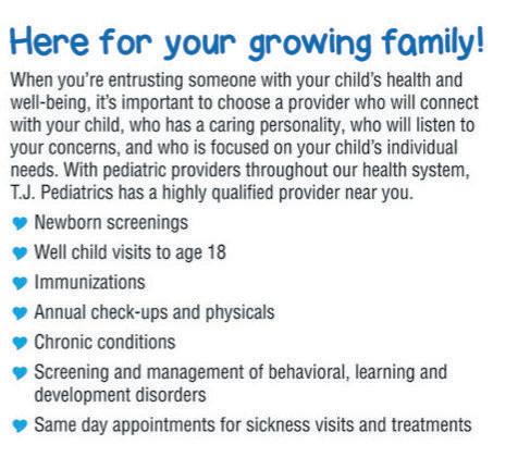 T.J. Health Columbia is a local hospital that is part of T.J. Regional Health in Glasgow. Specialists bring their services to the local commu nity through the hospital’s local primary care facility and various medical offices.