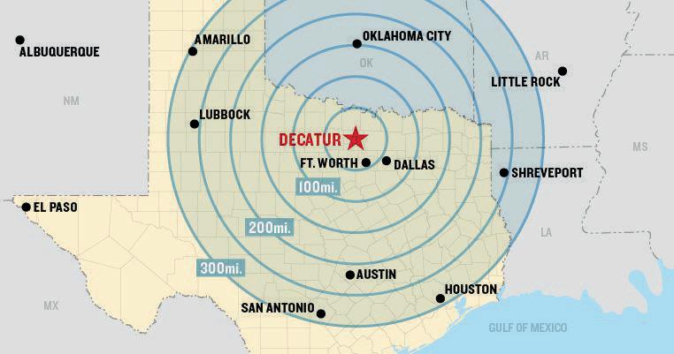 In the heart of Wis m il es from Interstate 35 and Alliance A irpo r t, and 45 minutes from DFW International Airport at the intersection of H wys 2 87 a n d 380, D ec at u r boasts nonstop access to the global marketplace.