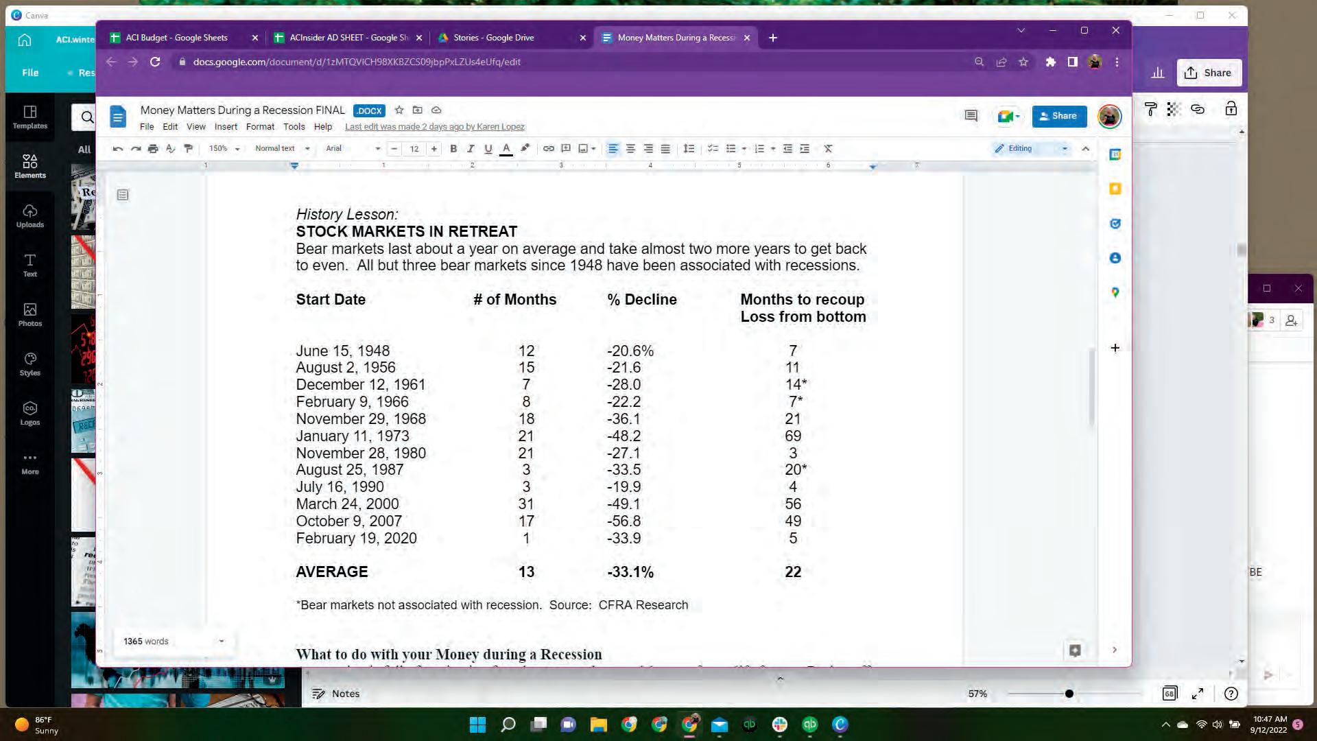Recessions cause companies to lose money, lay off employees and sometimes go out of business, causing a downhill slide in the stock market. But recessions come in different intensities. Our last recession began February 19, 2020, was caused by coronavirus shutdowns and was considered mild. There was a huge drop in the GDP and unemployment soared, but the economy recovered quickly. Compared to the Great Recession that began October 9, 2007, it lasted much longer – 18 months. During that time, a lot of businesses failed or had to be bailed out by the Federal government and unemployment hit 10%.