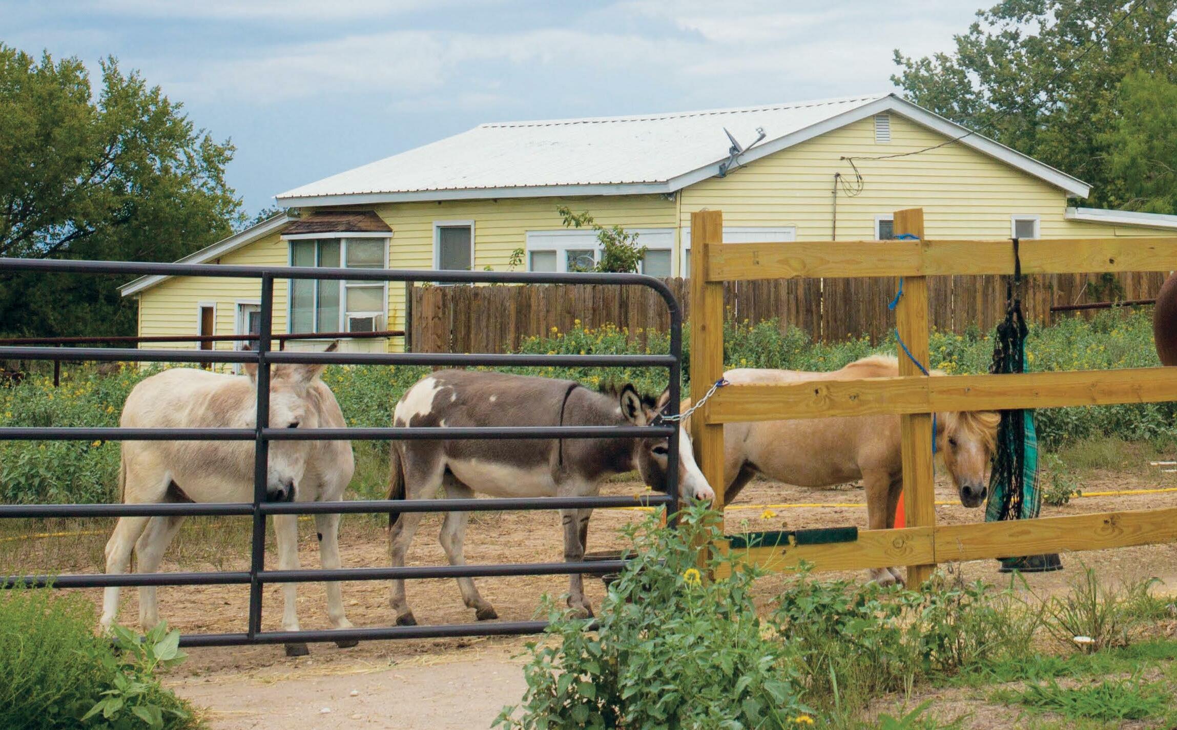 She had no prior experience with equine before taking in her first rescue, Sasha, a white donkey from Meadow Haven Horse Rescue. Shortly after that, she took in Martha, a pale, spotted donkey, and Sandy, a sand-colored mini horse.