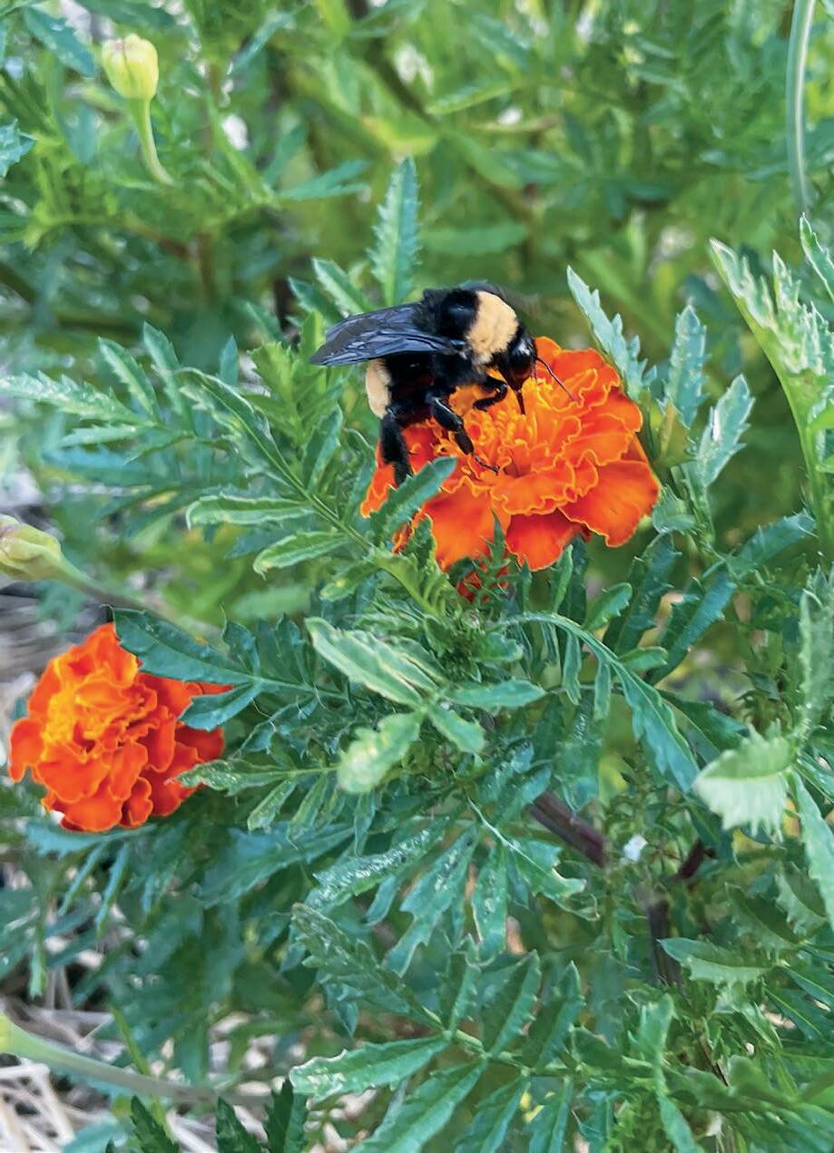 Asthe rays of the golden setting sun highlight the vibrant green sea of vegetation in the Theiss family garden, the warm summer breeze gently pulses across the leaves like emer ald waves flowing over an ocean of caringly cultivated crops. A sense of peace can be felt here as though one were stepping through the gates of an old sprawling country farm, when in actual ity, it’s hard to believe that this botanical paradise is located in downtown Marion.
