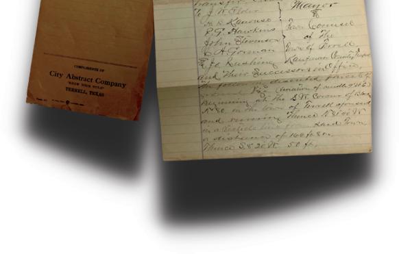 In 1873 a consortium of landowners led by Robert A. Terrell, an early pioneer and surveyor in the area, donated 100 acres to the railroad company in exchange for a depot on the rail line. The town was organized around this original town site and another 100 acres to the north owned by Terrell and his partners.