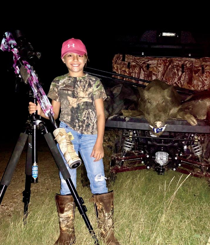or two?’ I’m sitting there counting deer. There’s several nice bucks in the pasture and they look up. There’s a pig coming from out of the creek. Well, next thing I know, there’s 50 pigs in the pasture, and they’re still coming.