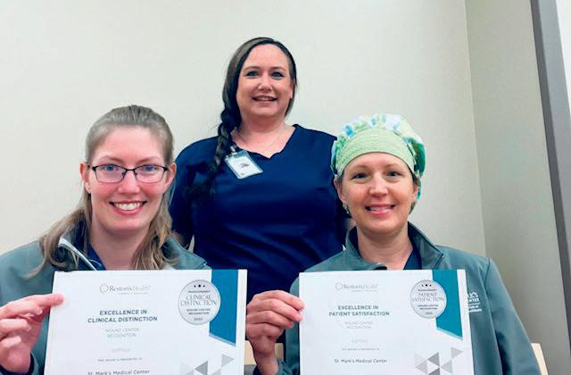 - Mark Kimball, St. Mark’s President and CEOSt. Mark’s Outpatient Physical Therapy team: Melinda (Mindy) Markwardt, PTA; Gil Henderson, LPT; Heidi Ehler, PTA; and Maribel Lara, PTA St. Mark’s Advanced Outpatient Wound Center team, Jackie Faigle, FNP; Stacie Schramek, RN; back, Jennifer Scott, RN, Program Director