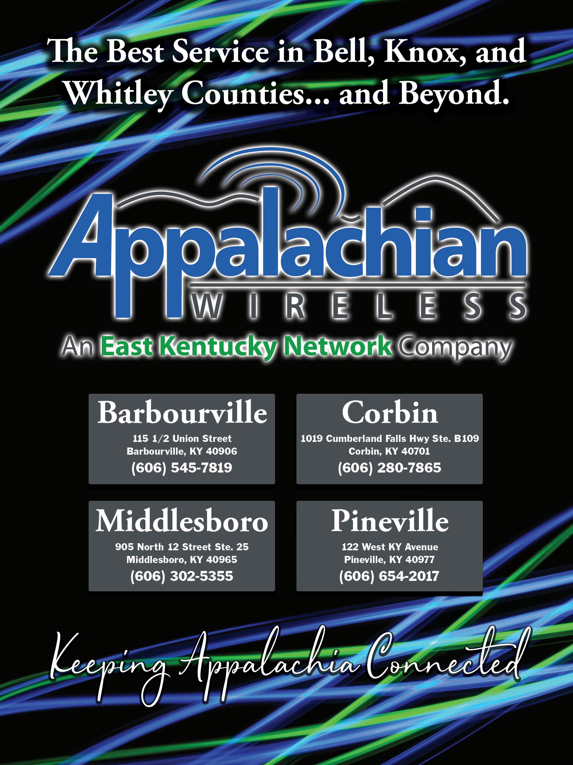 Appalachian Wireless currently has 27 retail locations and nine dealers throughout East ern Kentucky.