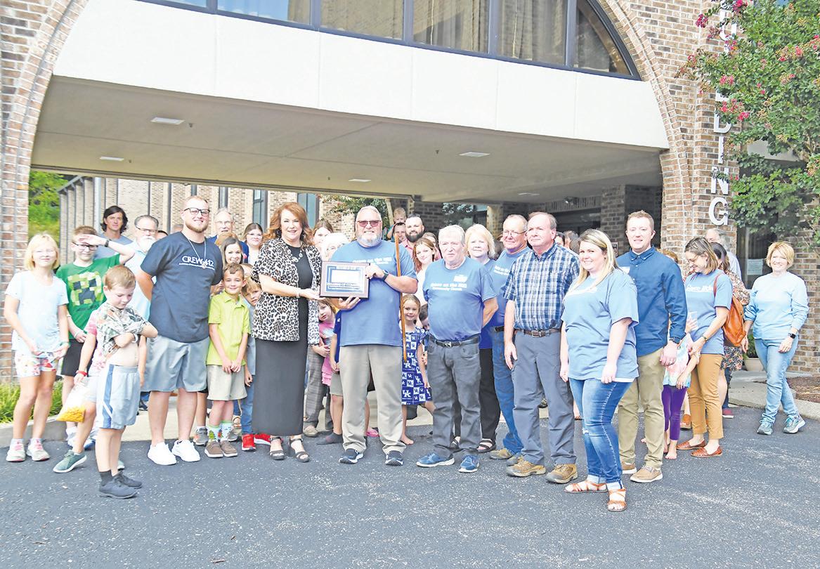Grace on the Hill Community Church cuts the rib bon Sunday, September 11th, commemorating the church’s new status as an independent, non-denomina tional church. Southern Kentucky Chamber of Commerce Vice-President Heather Barrineau presents a Chamber Membership Plaque to the Senior Pastor Scott Wilson. The church is located at 1632 Cumberland Falls Hwy, in Corbin.