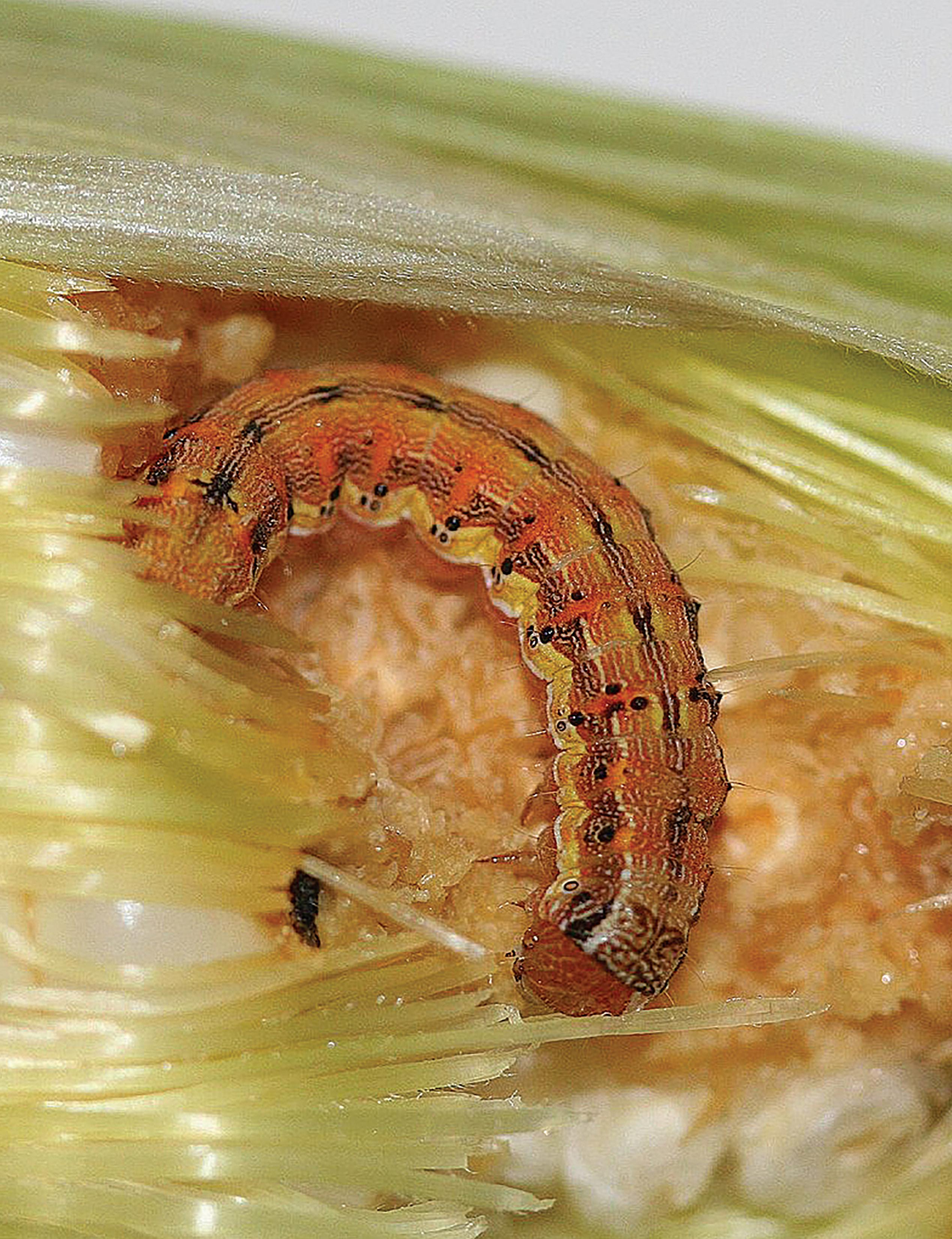In recent years, the Texas A&M Agril ife Extension Integrated Pest Manage ment program has documented H. zea resistance to all of the Bt traits except for the Vip trait. This is due in part to the great deal of overlap in our current Bt traits in corn and cotton, and the dif ferences of the trait expression in the plants. We have effectively applied a se lection pressure for Bt resistant H. zea caterpillars by having the same traits in corn and cotton. This insect moves into corn as it is tasseling, and the first set of caterpillars feed on the tassels and early fruit.