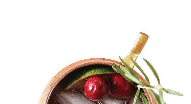 Garnish: Lime wedges, sugar-coated cranberries, fresh pomegranate seeds, fresh herbs