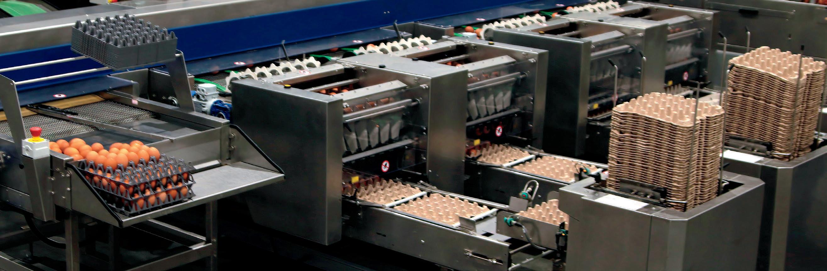 Suspect eggs are rejected and destroyed. The remaining eggs are individually weighed, sorted, and boxed for market. At capacity, the washing, scanning and packaging machine can handle 30,000 eggs an hour.