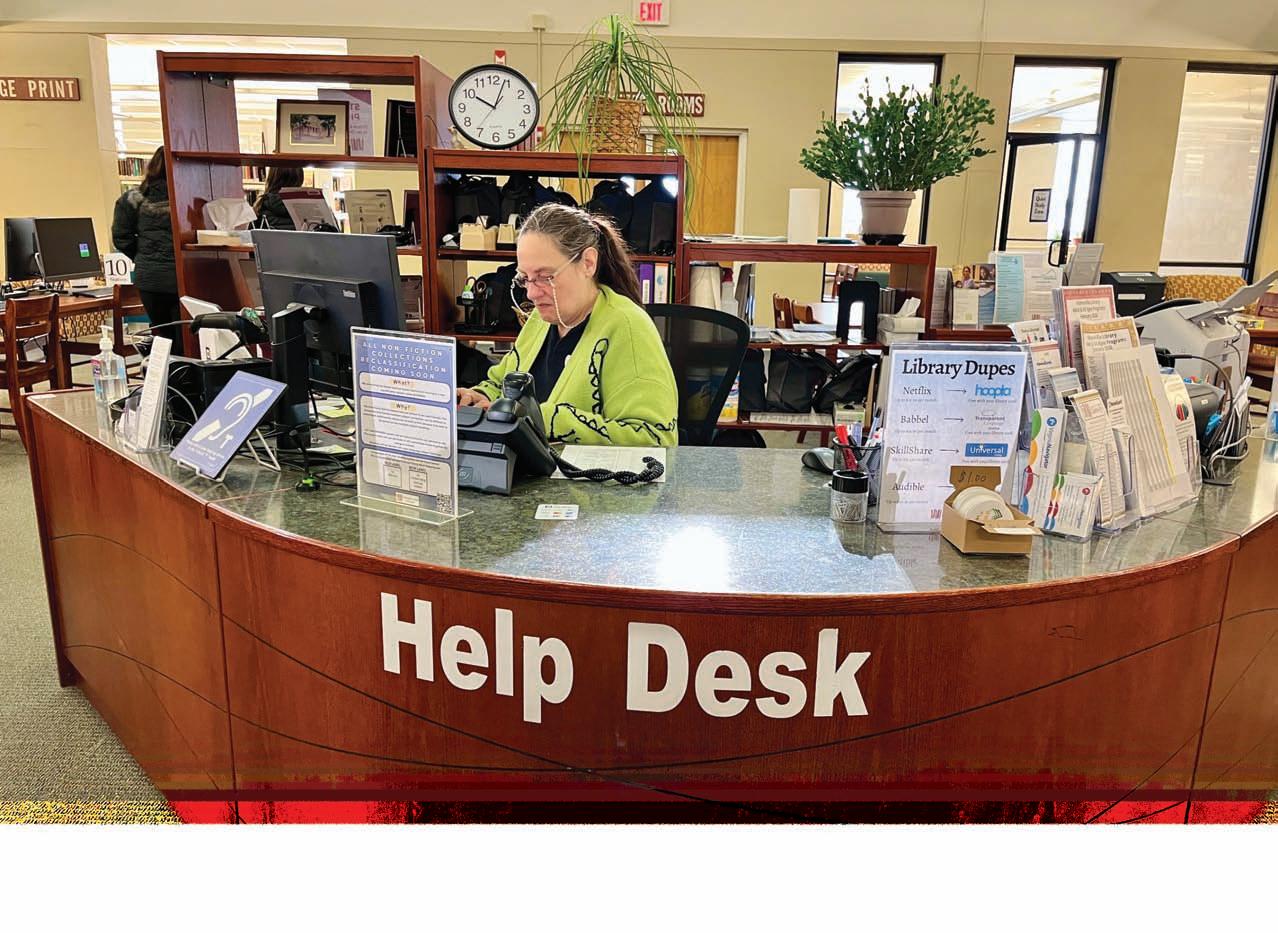 Top: Terry Bane, Circulation Supervisor, assists patrons with a variety of needs.