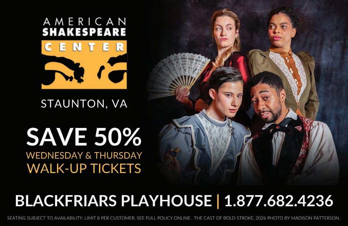 Go to AmericanShakespeareCenter.com for specific dates and to order tickets.