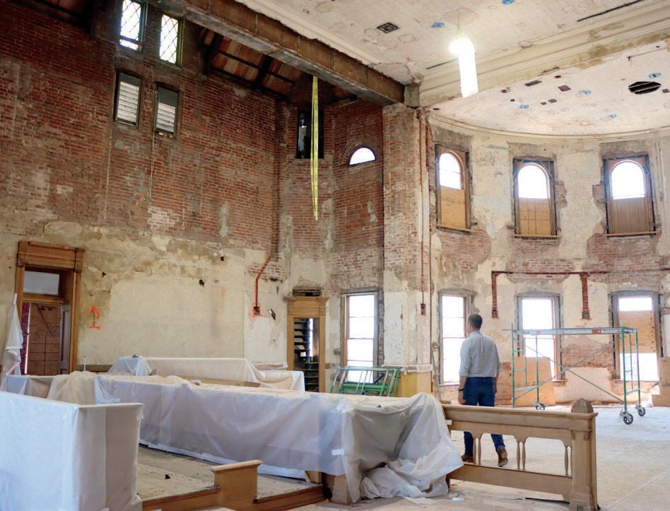 Work has included removing the central elevator to open up the central staircase to provide a view of the original skylights, installation of custom-fitted windows, a separate staircase to accommodate inmates, a new roof, upgraded HVAC and fire suppression system.